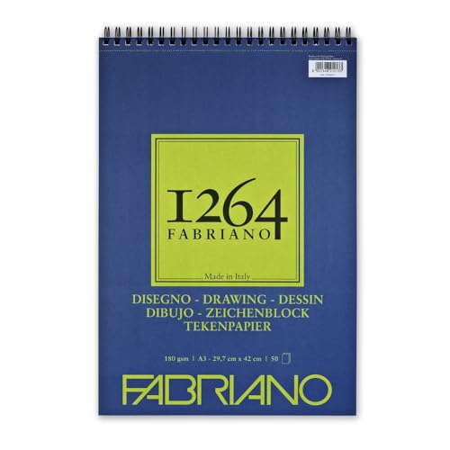 Unbekannt Honsell 19100647 Fabriano Disegno Bloc à dessin à spirale 1264 180 g/m² Format A3 50 feuilles de papier blanc naturel satiné à grain moyen sans acide pour toutes les techniques à sec