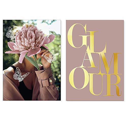 homelov Lot de 2 posters de qualité supérieure - Format A3 - 30 x 40 cm - Papier 100 % sans bois et impression d'art de qualité supérieure - Fond d'écran et autocollants gratuits - Ensemble d'or rose tropical