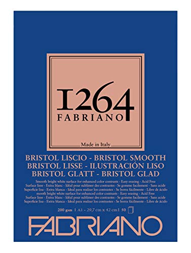 Unbekannt Honsell 19100655 Fabriano Bristol Bloc de 50 feuilles de papier blanc ultra lisse sans acide Idéal pour toutes les techniques sèches et les techniques humides légères Format A3 200 g/m²