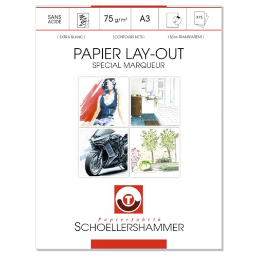 Schoellershammer - Bloc Layout Spécial Marqueurs à Alcool 75 grs/m2 - Extra Blanc - Semi-transparent - Pour Dessin Manga, Architecture, Illustration - Format A3 - Lot de 75 Feuilles