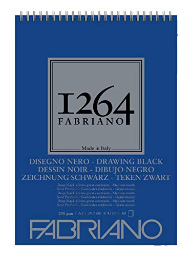 Honsell 19100651 Fabriano Disegno Nero Bloc de 40 feuilles de papier noir satiné à grain moyen sans acide pour toutes les techniques à sec Format A3 200 g/m²