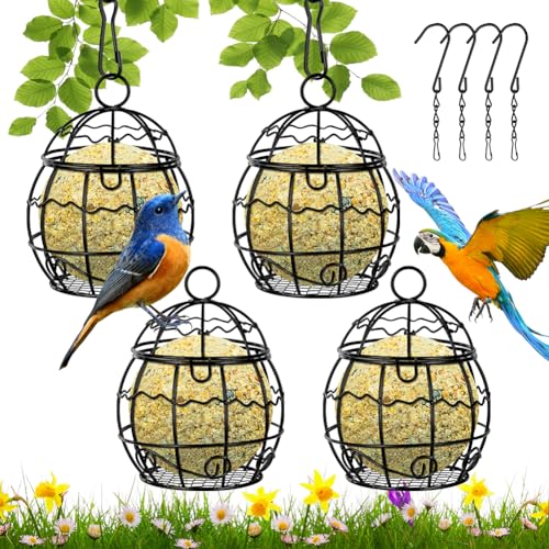 OFFCUP Mangeoires Oiseaux, 4pcs Métal Mangeoire Oiseaux Exterieur avec 4pcs Crochets en Forme de S, Suspendue Boule de Graisse Bird Feeder pour la Cour de la Maison Le Jardin la Faune (Noir)