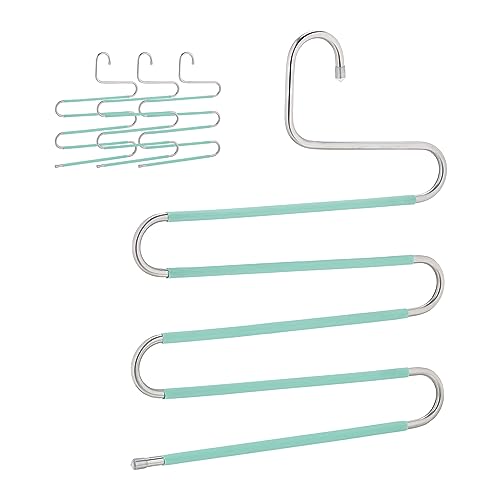 Relaxdays Cintre pour Pantalon, Lot de 4, Forme Un S, 5 Barres, antidérapant, Peu encombrant, argenté et Vert