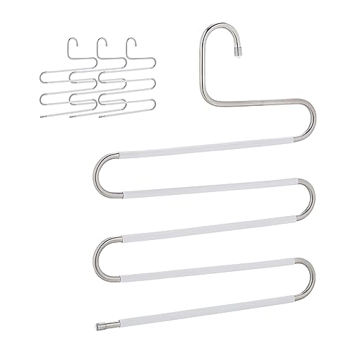 Relaxdays Cintre pour Pantalon, Lot de 4, Forme Un S, 5 Barres, antidérapant, Peu encombrant, argenté et Blanc