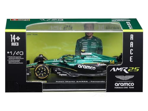Bburago - F1 Aston Martin AMR25 Formula 1 2025#14 Alonso, modèle réduit de Voiture Diecast à l'échelle 1:43, réplique Officielle Aston Martin, détails réalistes, âge recommandé 3+ Ans