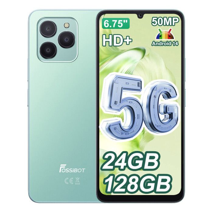 FOSSiBOT S1 5G Smartphone 24Go (6+18) RAM /128Go ROM 6.75 HD+ 4900mAh 50MP Android 14 Téléphone Portable NFC GPS Double SIM -