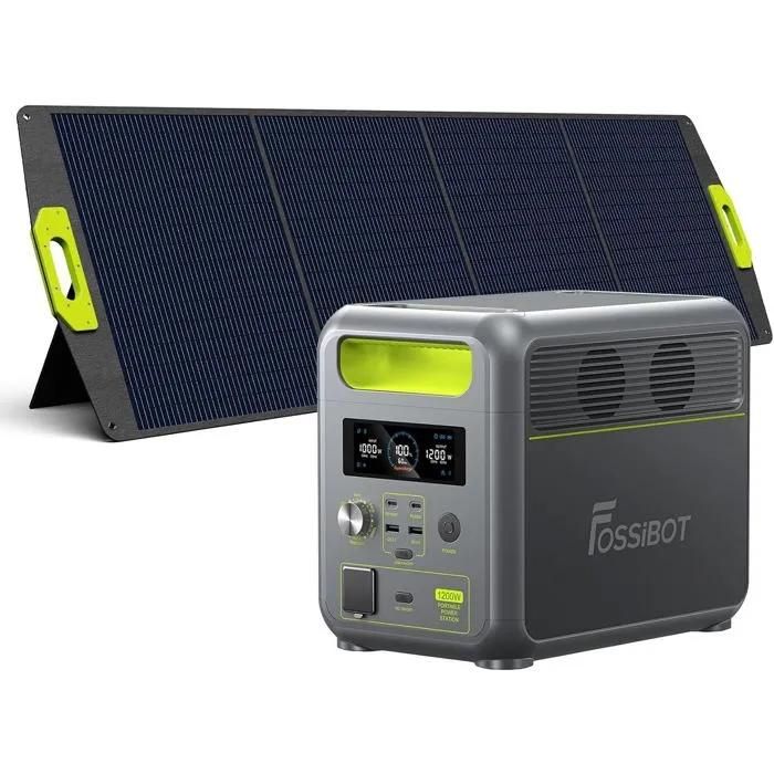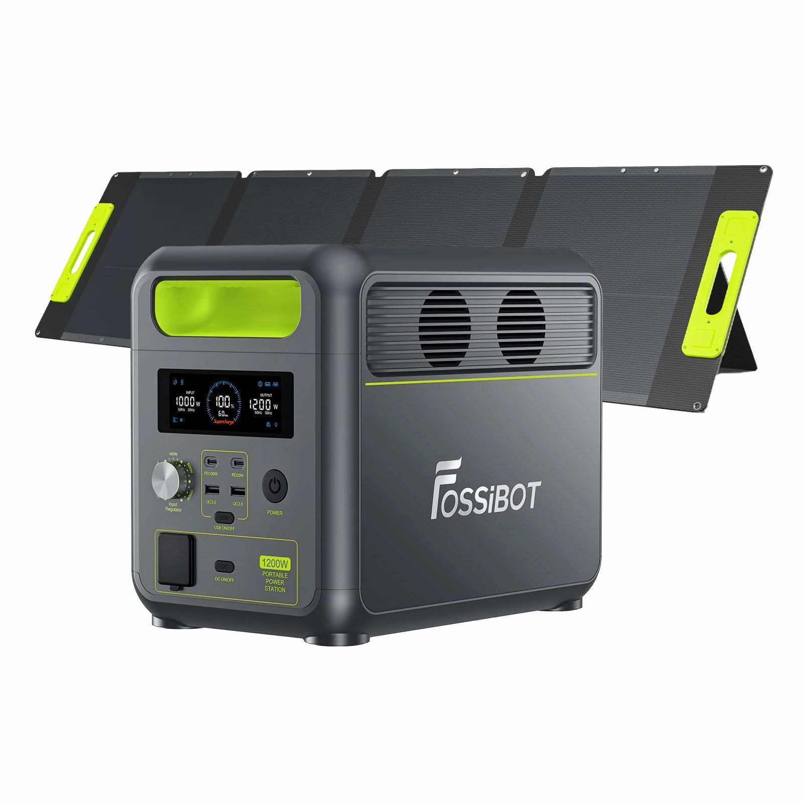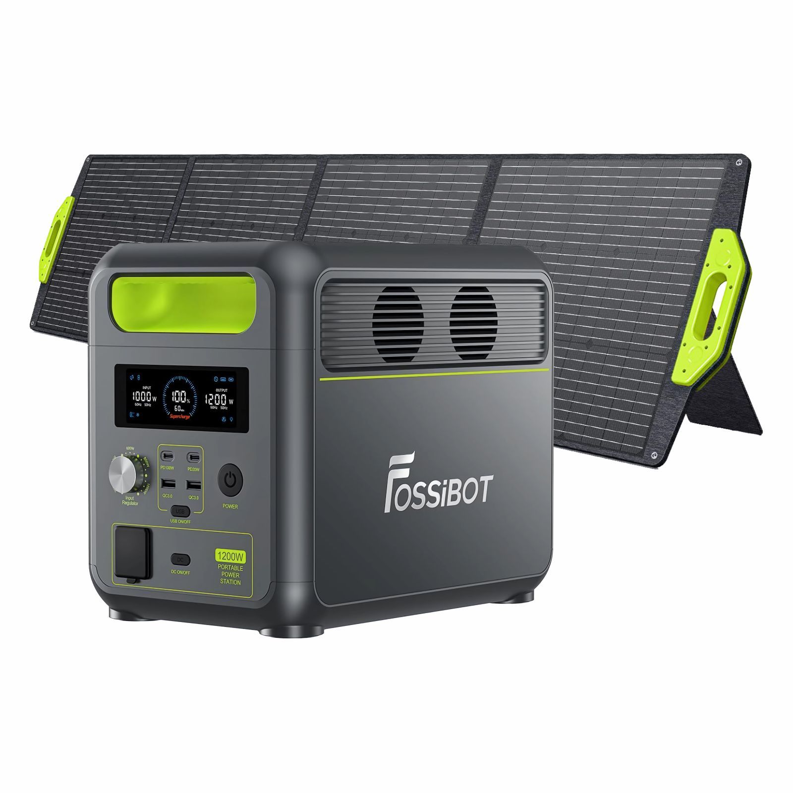 FOSSiBOT Generateur Electrique Solaire F1200 avec 200W Panneau Solaire, 1024Wh Batterie LiFePO4 avec 2 Sorties CA 1200W (2400W Pic),