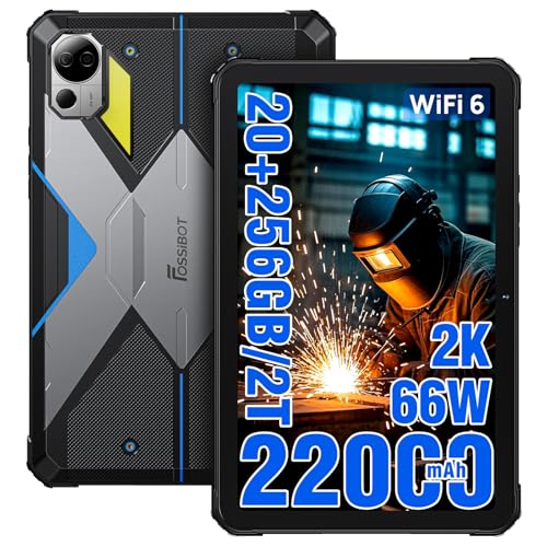 FOSSiBOT DT2 Tablette Incassable 22000mAh(66W) 20Go + 256Go/2To Tablette PC, 10.4" 2K FHD IPS Tablette Durcie 64+32MP Android 13 4G Tablette Tactile, WiFi6/Octa-Core/IP68/IP69K/OTG/GPS/Face ID (Bleu)