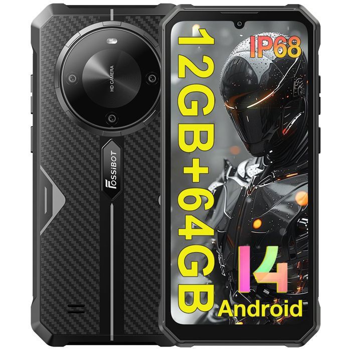FOSSiBOT F105 Smartphone Incassable Android 14, 6.745" HD+ écran Smartphone Etanche, 10300mAh Telephone Portable Incassable, 12Go(4+8)+64Go/128Go Extensible, 20MP+8MP/4G-Dual SIM/OTG/GPS/Face ID