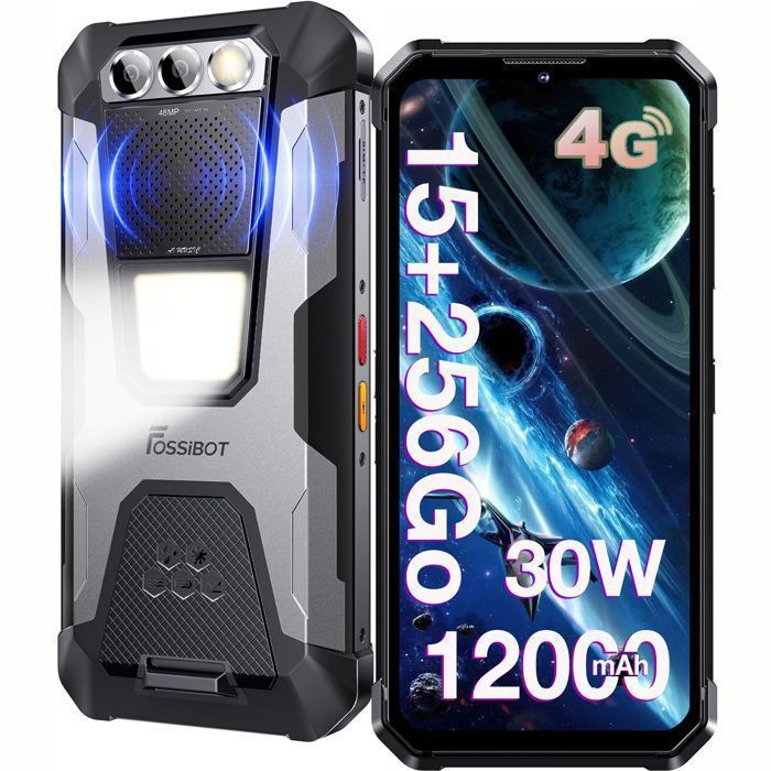 FOSSIBOT F106 Pro Smartphone Robuste 6.58 15Go + 256Go 48MP 12000mAh IP68 Android 14 Téléphone Haut-parleur 110dB Double SIM 4G