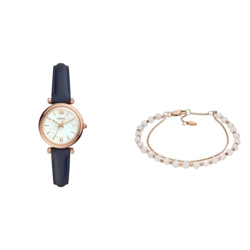 Fossil Montre pour Femmes Carlie, Mouvement à Quartz, Boîtier en Acier Inoxydable Or Rose de 28 mm avec Bracelet en Cuir, ES4502 + Bracelet en Quartz Rose, Largeur : 4mm, JF04444791