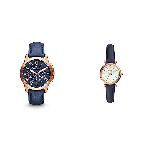 Fossil Montre pour Hommes Grant, Mouvement Chronographe à Quartz & Montre pour Femmes Carlie, Mouvement à Quartz, Boîtier en Acier Inoxydable Or Rose de 28 mm avec Bracelet en Cuir, ES4502
