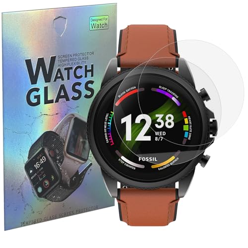 KELOLIN (4 Pièces) HDVerre Trempé pour Fossil Gen 5 (2020) / Fossil Gen 6 (2021), 9H Dureté, Anti-Rayures, HD Protection Ecran Verre Trempé Compatibles avec Fossil Gen 5 (2020) / Fossil Gen 6
