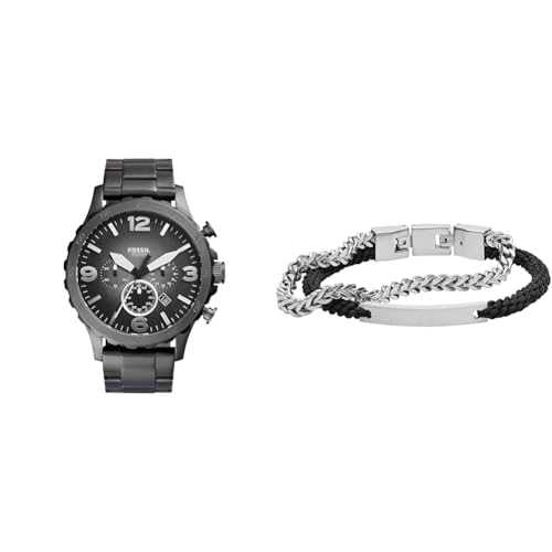 Fossil Montre pour homme Nate, mouvement chronographe à quartz, boîtier en acier inoxydable fumé de 50 mm avec bracelet en acier inoxydable, JR1437