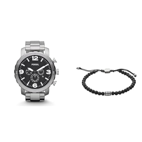 Fossil Nate Montre pour Homme, Mouvement Chronographe à Quartz + Bracelet Noir Semi-Précieux, JF02887040