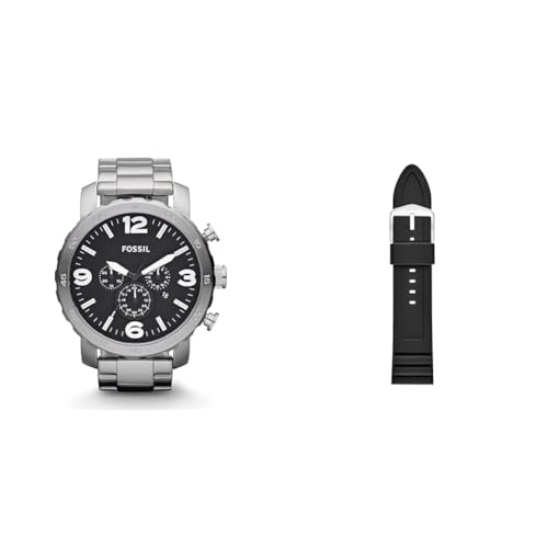 Fossil Montre pour homme Nate, mouvement chronographe à quartz, boîtier en acier inoxydable noir de 50 mm avec bracelet en acier inoxydable, JR1401