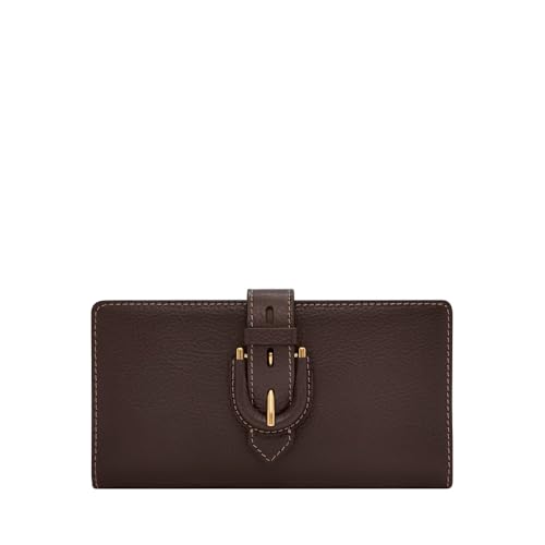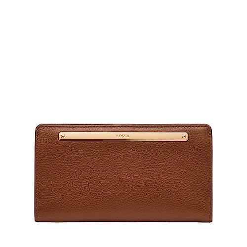 Fossil Portefeuille Multifonction en Cuir Liza pour Femme, Marron avec Or, Taille Unique