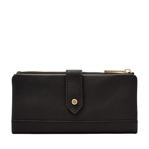 Fossil Portefeuille pour femmes Logan, Pochette à onglet en cuir/polyuréthane noir 17,1 cm L x 1,9 cm l x 8,9 cm H SL7830001