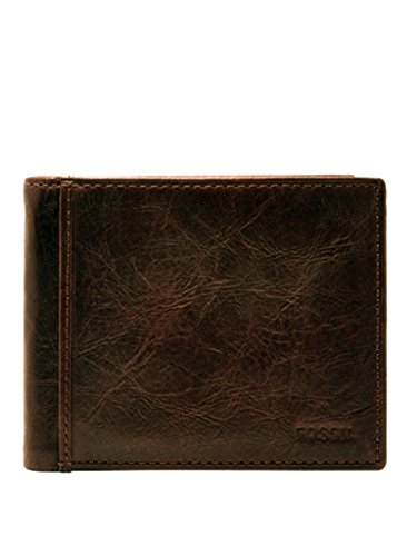 Fossil Portefeuille pour hommes Derrick, Portefeuille en cuir marron foncé 11,43 cm L x 1,9 cm l x 8,89 cm H ML3681201