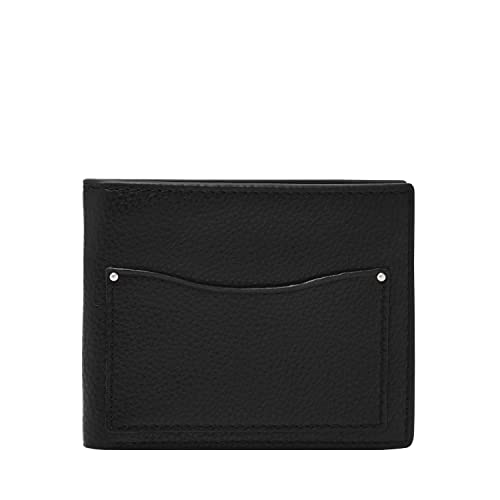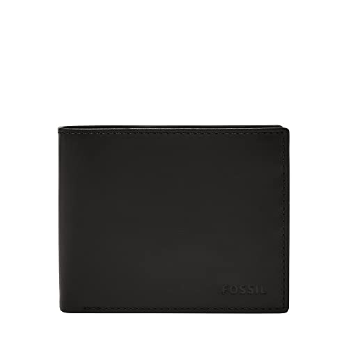 Fossil Portefeuille pour hommes Ryan, Portefeuille en cuir noir 11,4 cm L x 2,5 cm l x 9,5 cm H ML3736001