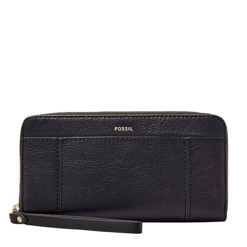 Fossil Logan Étui Portefeuille en Cuir avec Fermeture éclair pour Femme Noir Taille Unique