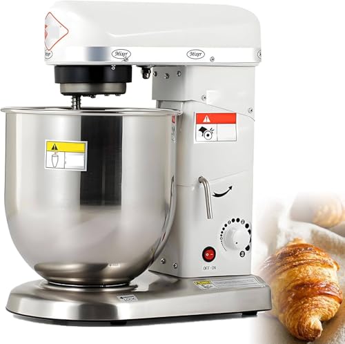 ByBoDi Robot pâtissier 500 W, Robot pâtissier électrique 3 en 1,Bol 5 L/7 L/10 L,Batteur électrique avec Fouet,Crochet,Batteur électrique,idéal pour Les boulangeries,pizzerias et Restaurants White-7L