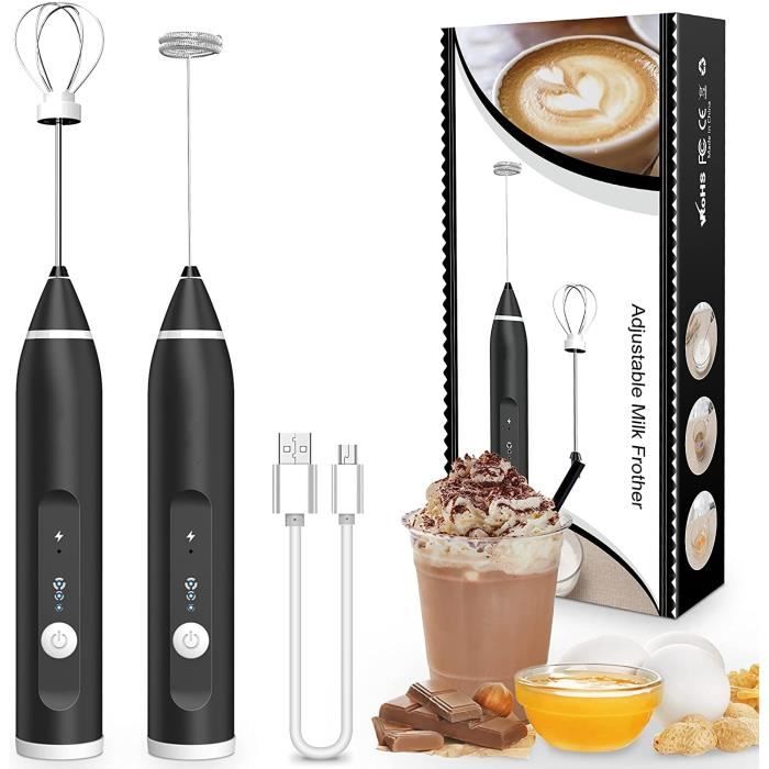 Mousseur à Lait USB Rechargeable Portable mini fouet electrique 3 Vitesses avec Dual Fouet Tête Spirale