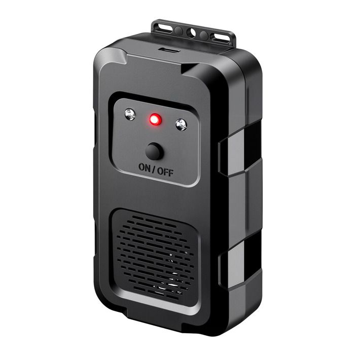 Wiltec Répulsif fouine/martre à ultrasons avec flash LED portée 20 m² 4×AA / USB‑C / connexion voiture marche/arrêt auto pour vo