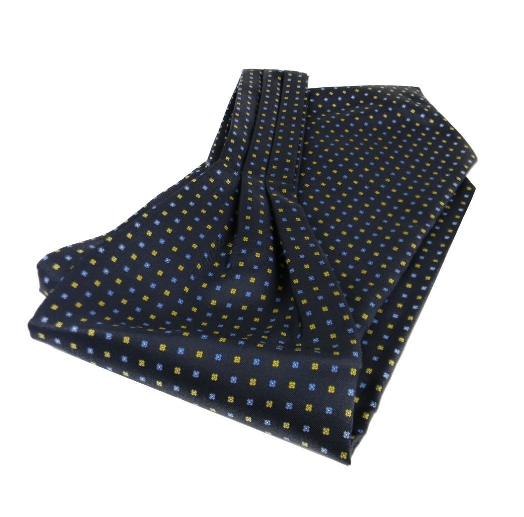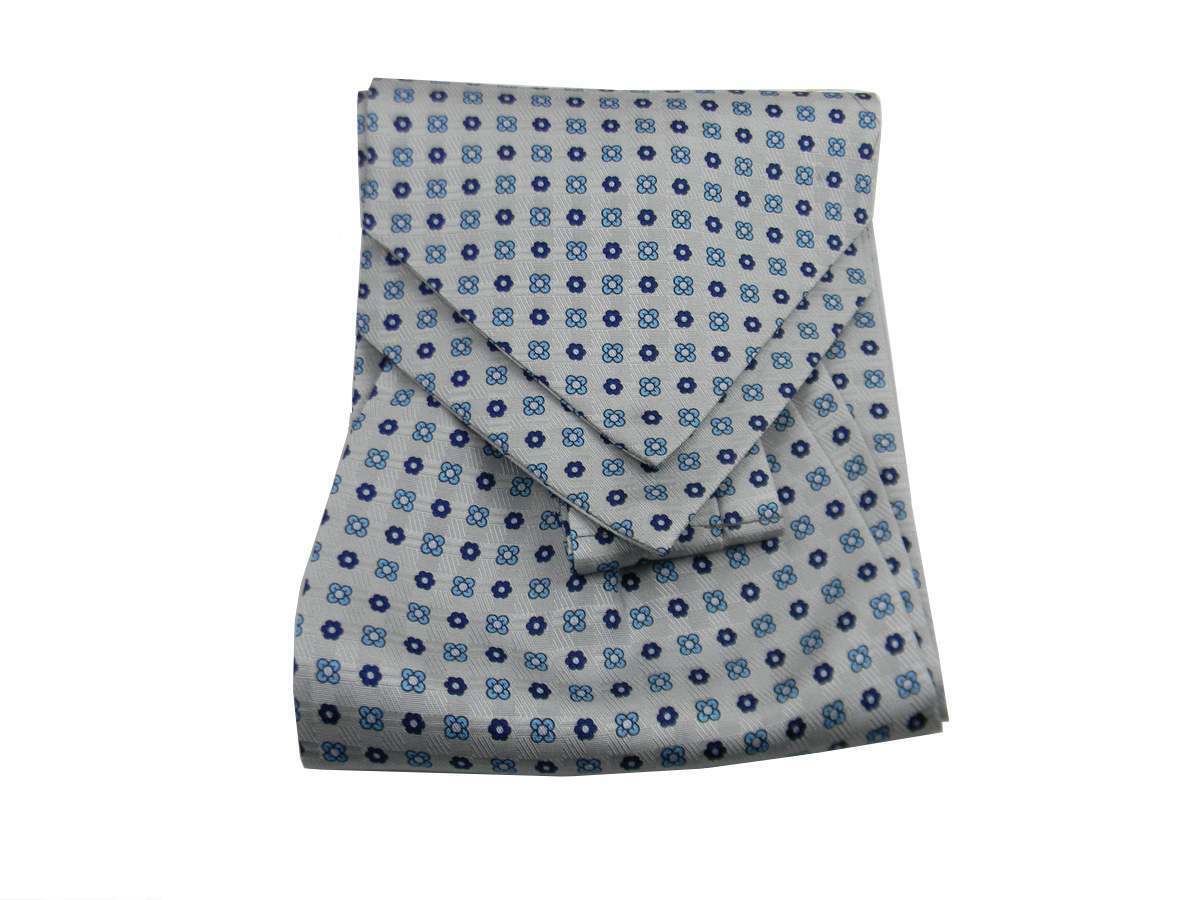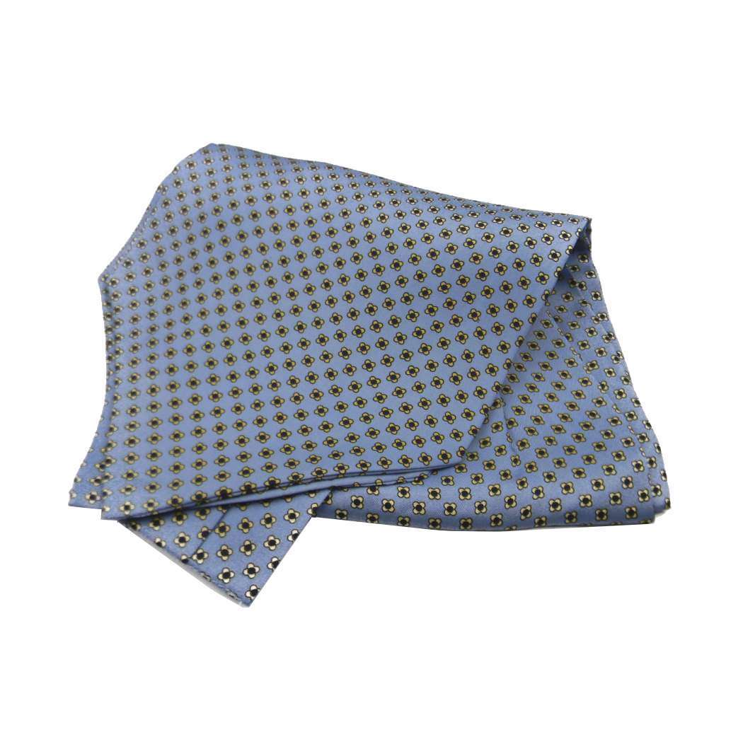 Ascot Homme Bleu Soie Foulard Dessin Petit Fleur Classique en Soie