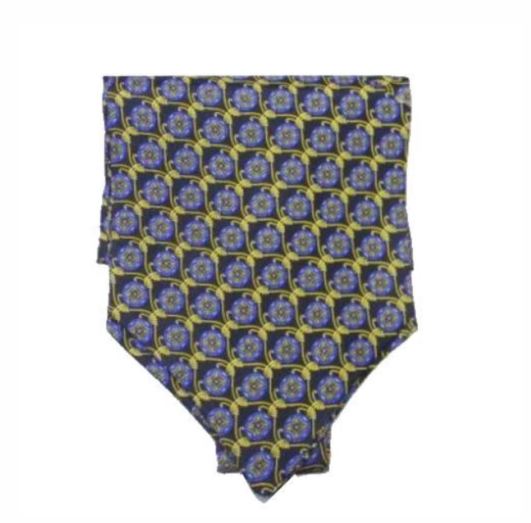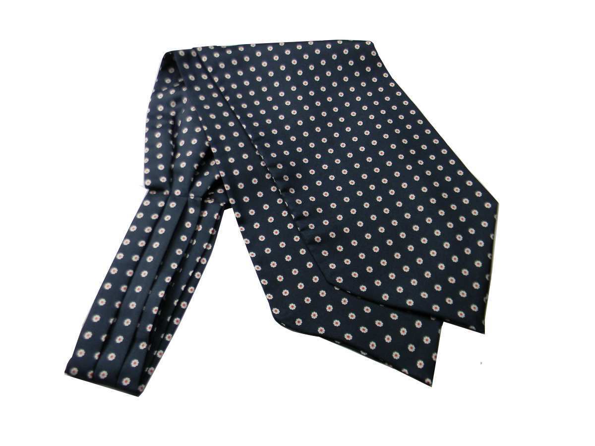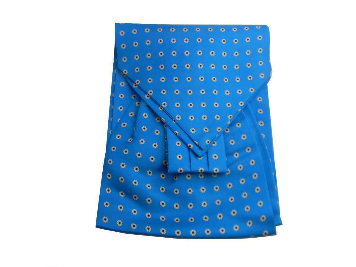 Ascot Homme Soie Bleu Fleurs Marguerites Blanc Ampoule Rouge Foulard Cashe Avec