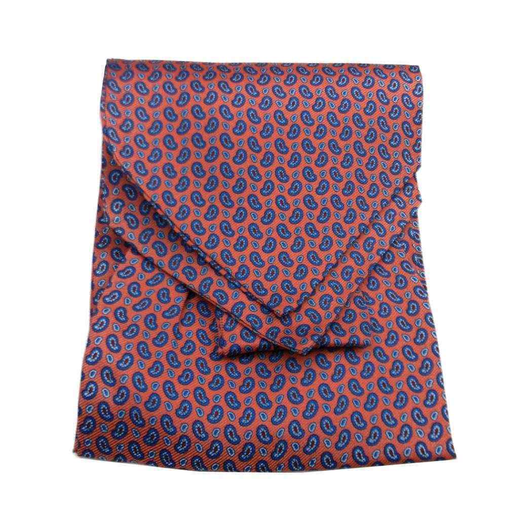 Ascot Homme Soie Bleu Pois Orange Foulard De Cou en Cashe Avec Jantes Ita