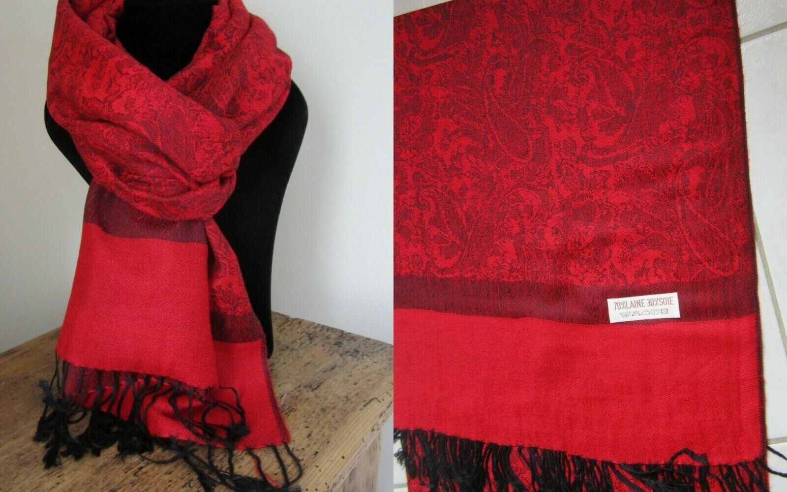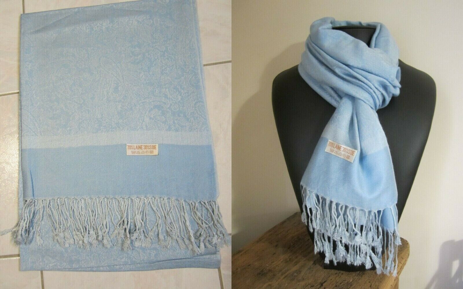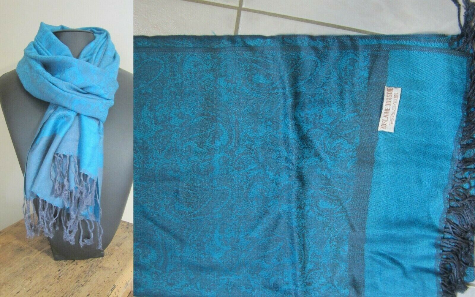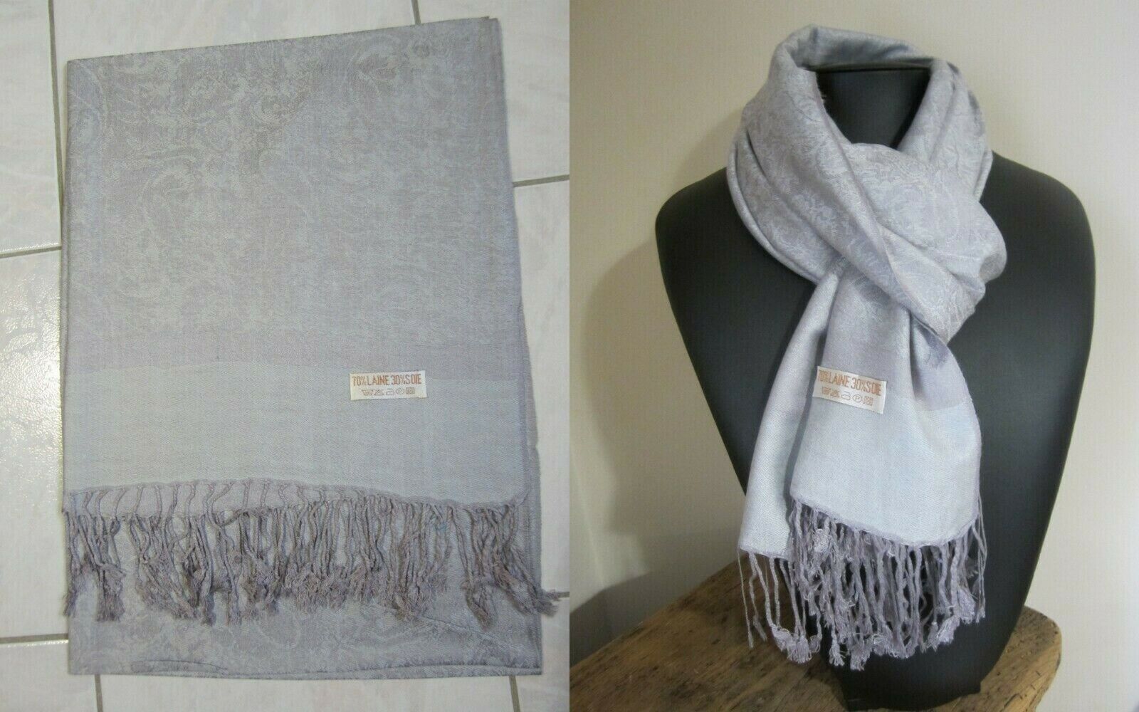 Echarpe pashmina Laine & Soie frange Etole châle foulard homme/femme Neuf 70X190