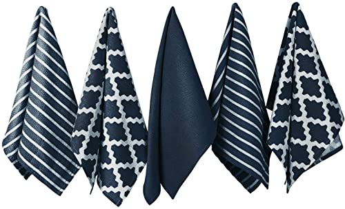 Penguin Home® Coton Torchon 5-Pièce Set, 65 cm Longueur x 45 cm Largeur, Marine