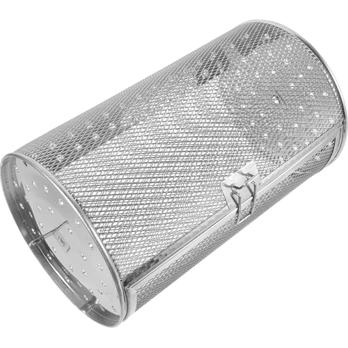 SHINEOFI Panier à Grillade Rotatif en Acier Inoxydable 14x23 Cm pour Barbecue et Four à Air Chaud, Cage de Cuisson pour Noix et Fruits Secs, Ustensile Cuisine Extérieur Pratique