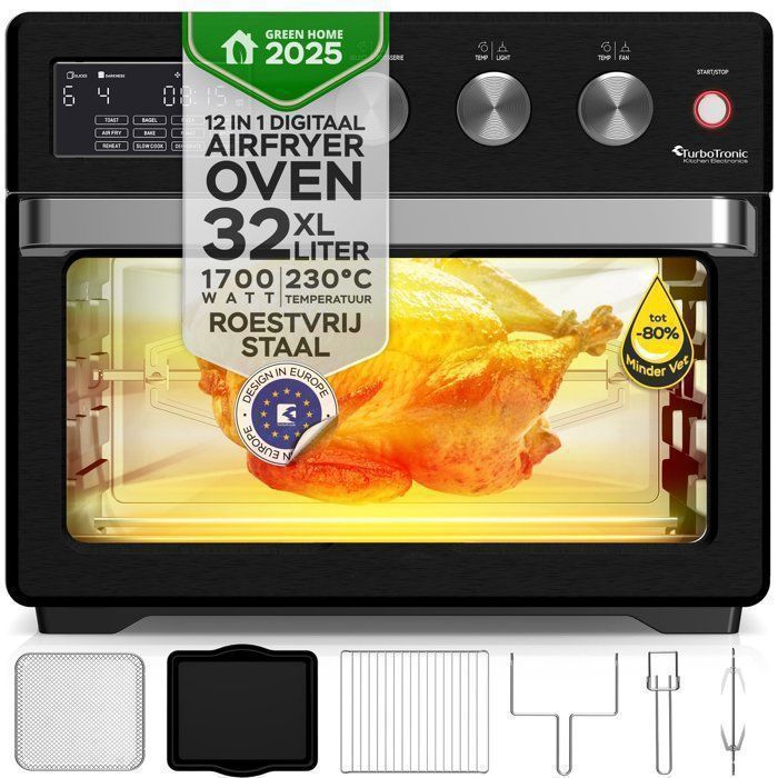TurboTronic AF32DRD – Four à air chaud XXL & mini four 32 L – 12 programmes – 25 à 230 °C – Noir