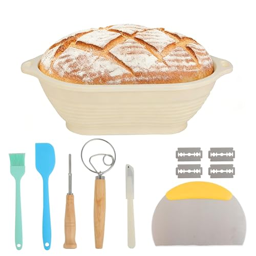 Banneton en Silicone - Set 7 Pièces pour Pain (Résistant à la Chaleur, Pliable) avec Banneton pour Pain Ovale, Raclette, Pinceau - Accessoires Four & Airfryer (beige)