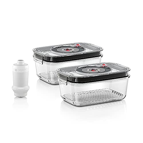 Bosch MSZV6FSG2 Kit de conservation sous vide avec pompe à vide et 2 récipients en verre borosilicate résistant à la température, passe au congélateur et au four, sans BPA, passe au lave-vaisselle