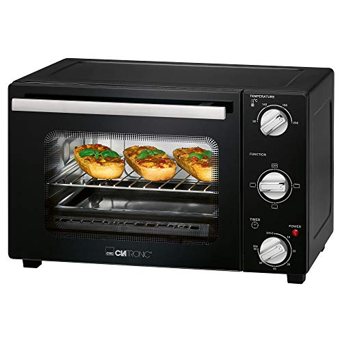 Clatronic Mini-four MBG 3726, petit four avec chaleur supérieure et inférieure, parfait pour les pizzas, les petits pains et les caravanes/camping, four à pizza/camping avec minuteur et accessoires