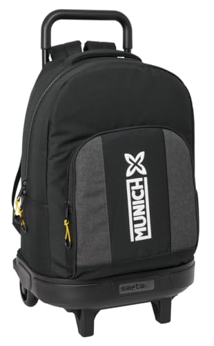 safta Munich Vulcan - Grand Sac à Dos à roulettes, Compact, Amovible, idéal pour Les Enfants de différents âges, Confortable et Polyvalent, qualité et résistance, 33 x 22 x 45 cm, Noir, M