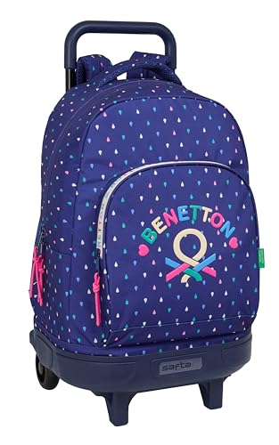 safta Benetton Unique - Grand sac à dos à roulettes, compact évolution, amovible, idéal pour les enfants de différents âges, confortable et polyvalent, qualité et résistance, 33 x 22 x 45 cm, Bleu