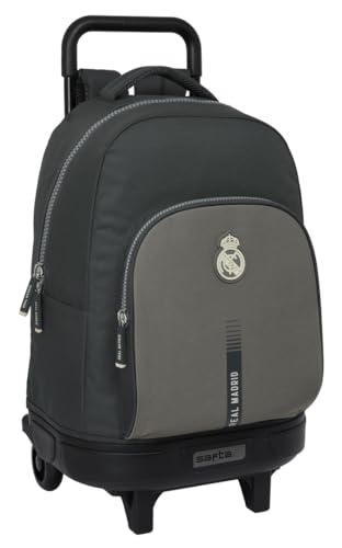 Safta Real Madrid 3ème équipe 24/25 - Grand sac à dos à roulettes, compact, amovible, idéal pour enfants de différents âges, confortable et polyvalent, qualité et résistance, 33 x 22 x 45 cm, gris, M,