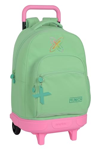 Safta Munich Pistache - Grand Sac à Dos à roulettes, Compact, Amovible, idéal pour Enfants de différents âges, Confortable et Polyvalent, qualité et résistance, 33 x 22 x 45 cm, Couleur, Vert