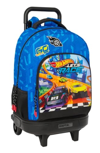 SAFTA Hot Wheels Let's Race - Grand Sac à Dos à roulettes, Compact, Amovible, idéal pour Les Enfants de différents âges, Confortable et Polyvalent, qualité et résistance, 33 x 22 x 45 cm, Bleu/Noir,