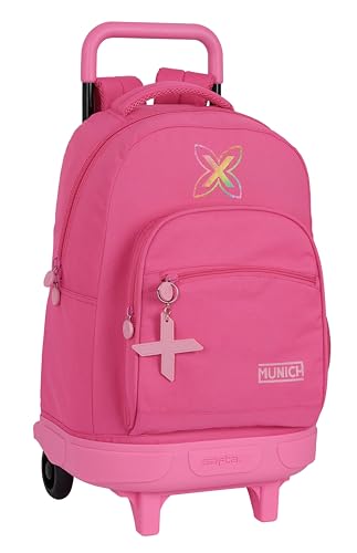 Safta Munich Fresa - Grand Sac à Dos à roulettes, Compact, Amovible, idéal pour Enfants de différents âges, Confortable et Polyvalent, qualité et résistance, 33 x 22 x 45 cm, Couleur, Rose Fraise,