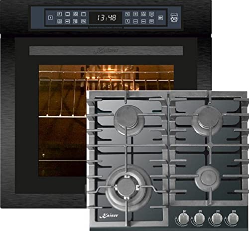 Kaiser Set four EH 6306 RS +KCG 9386, Four à encastrer,Acier noir,79L 15 Fct. +plaque de cuisson gaz