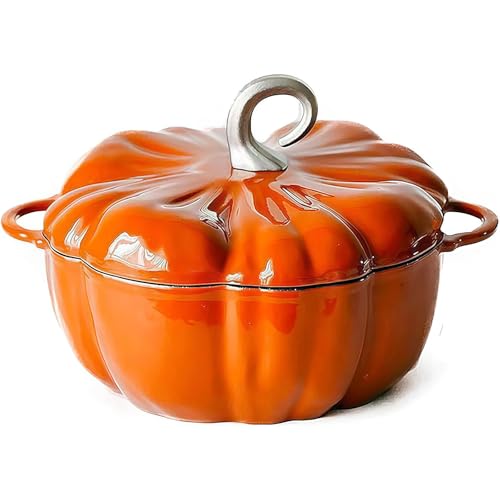 PRMTYUP Cocotte à La Citrouille, Four Hollandais à La Citrouille avec Couvercle, Marmite en Fonte éMailléE, Marmite à Citrouille AntiadhéSive, Marmite à RagoûT, Pot De DéCoration,Orange,3.7L