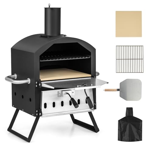 GYMAX Four à Pizza Extérieur Mini, Fours à Pizza au Bois avec Pierre à Pizza, Pelle à Pizza, Jambes Pliantes et Poignées Portables, Ventilateurs Ajustables, Couvercle Imperméable