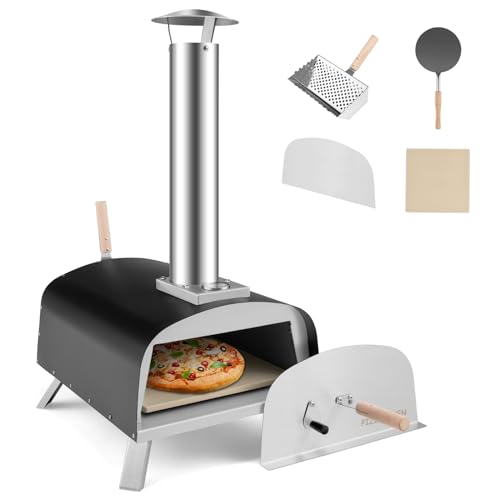 KOMFOTTEU Four à pizza pour extérieur, portable, à bois, avec pierre à pizza, pelle à pizza, en acier inoxydable, pour barbecue, camping