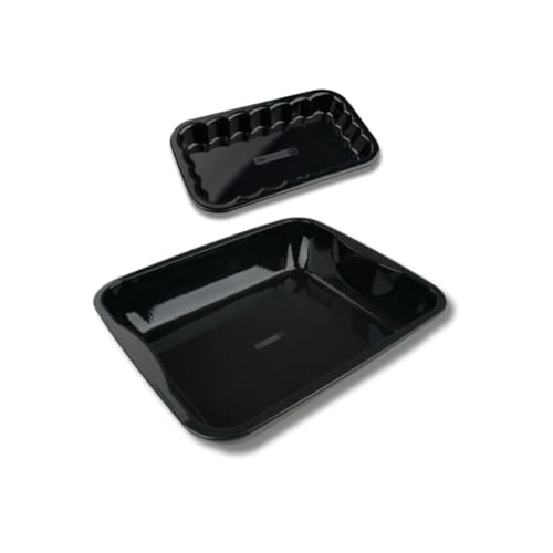 Dr. Oetker 9929450 Set de 2 Plats à Four, Plat de Cuisson, Plaque à pâtisserie, Plat Four, Plaque pâtisserie, Acier, Email, Noir, 42 x 29 x 4 cm et 40 x 34 x 8 cm