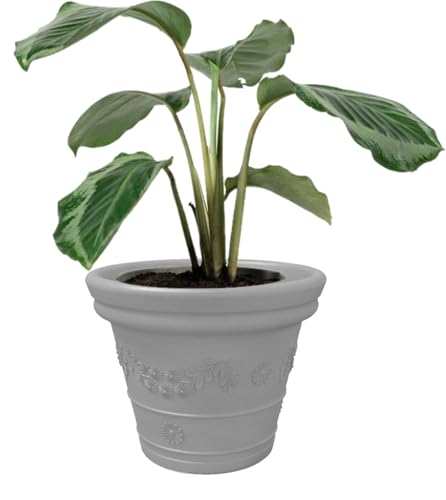 Kloris Pot de Fleurs Rond Lisse Double Bord modèle 40 Gris Tourterelle polyéthylène diamètre extérieur 41 cm Hauteur et Profondeur 37 cm sous Forme Incluse